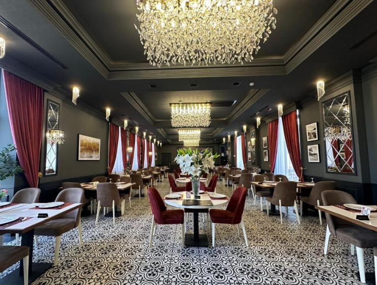 Otel açıq büfe və ya halal səhər yeməyi təklif edir. Restoranda pizza, dəniz məhsulları və Türk mətbəxinə aid yeməklər servis olunur. Vegetaryan, südsüz və halal menyu seçimləri də mövcuddur.