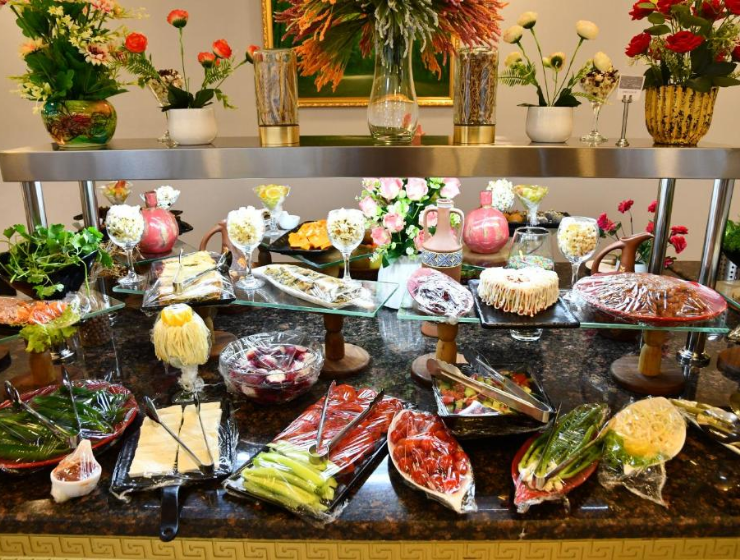 Park Naftalan Sanatoriya Kompleksi təsisinin qonaqları açıq büfe səhər yeməyinin dadını çıxara bilərlər.